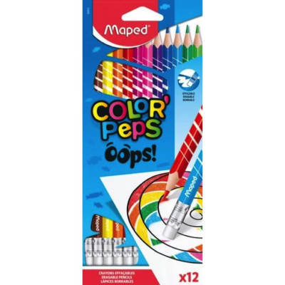MAPED- LAPICES DE COLORES OOPS C/ GOMA / BORRABLES x 12 SURTIDO