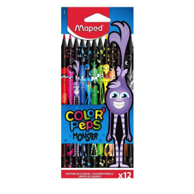 MAPED- LAPICES DE COLORES PEPS MONSTER x 12 SURTIDOS LARGOS