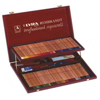 LYRA- LAPIZ REMB AQUARELL CAJA MADERA CON HERRAJES 106 ELEMENTOS