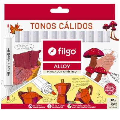FILGO- MARCADOR ARTISTICO DOBLE PUNTA ALLOY X 12 CALIDOS